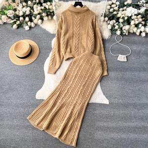Elegant Casual Knit Skirt Set Ladies Two Piece Set Autumn Solid Crop Top T Shirt High Waist Slit Package Hip Skirt Women Outfit Dress Sets Aliexpress